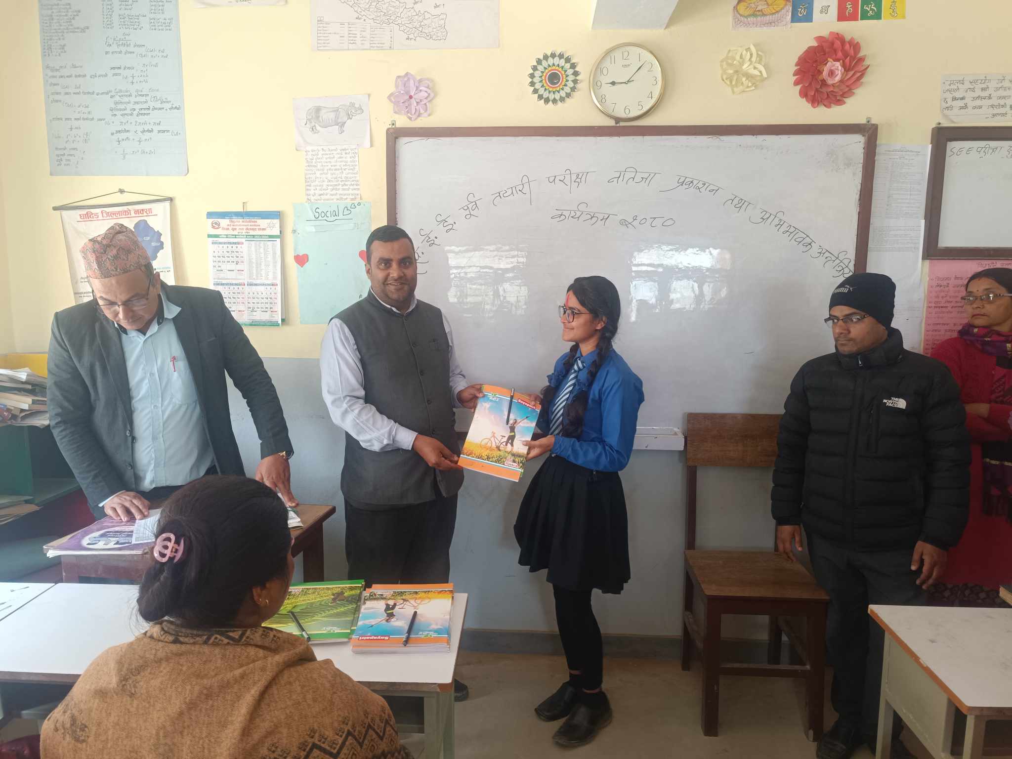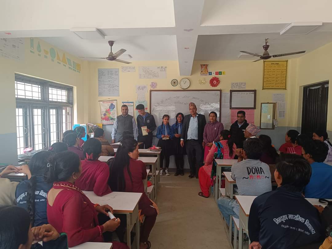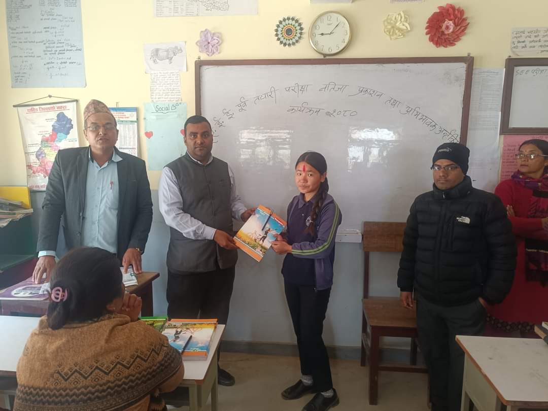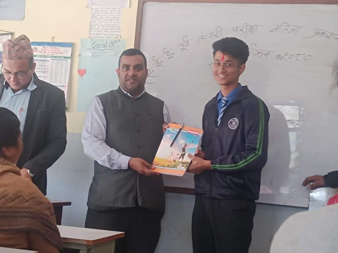 मिति २०८० फाल्गुण ०९ गतेका दिन कक्षा १० काे सिकाई सुधारका लागि एस.ई.ई. तयारी परीक्षा २०८०काे नतिजा प्रकाशन ,ग्रेडसिट वितरण तथा शिक्षक ,अभिभावक र विद्यार्थी हरु विच अन्तर्क्रिया कार्यक्रम सिद्धलेक-१ बैरेनी,धादिङमा अवस्थित मिन्दुका माध्यमिक विद्यालय प्राङ्गणमा सम्पन्न भएकाे छ । प्रथम ,द्वितीय ,तृतीय र चाैथाे हुने विद्यार्थीहरुलाई पुरस्कार वितरण गरी सबै अभिभावकहरु सँग छलफल कार्यक्रम पनि गरिएकाे थियाे ।