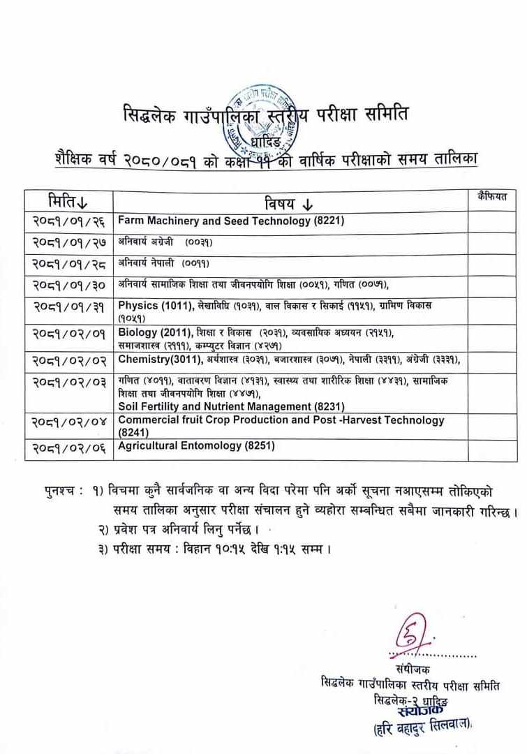 २०८०/८१ कक्षा ११ काे वाषिर्क परिक्षा तालिका सम्बन्धि सुचना !!