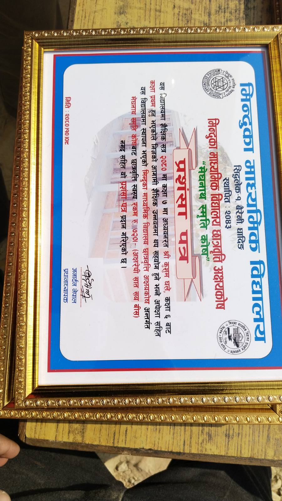 निबन्ध लेखन प्रतियाेगितामा तृतीय स्थान हासिल